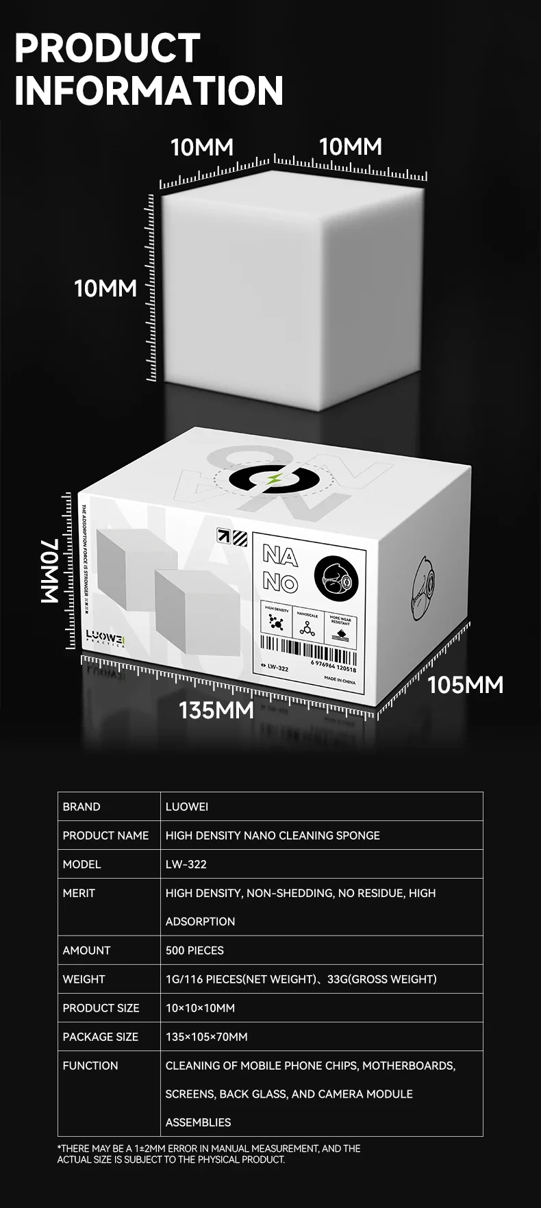 LUOWEI LW-322 Nano Cleaning Sponge No Shedding for Mobile Phone Screen PCB Motherboard Cleaning Repair Tools Cleaning Sponges
