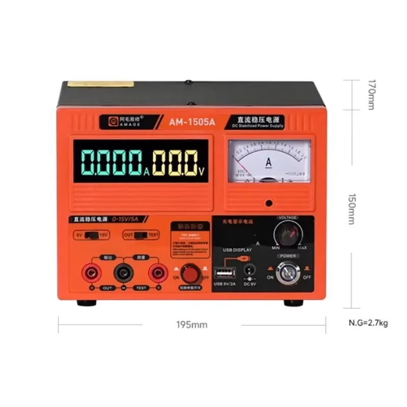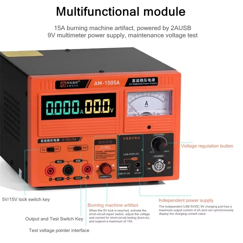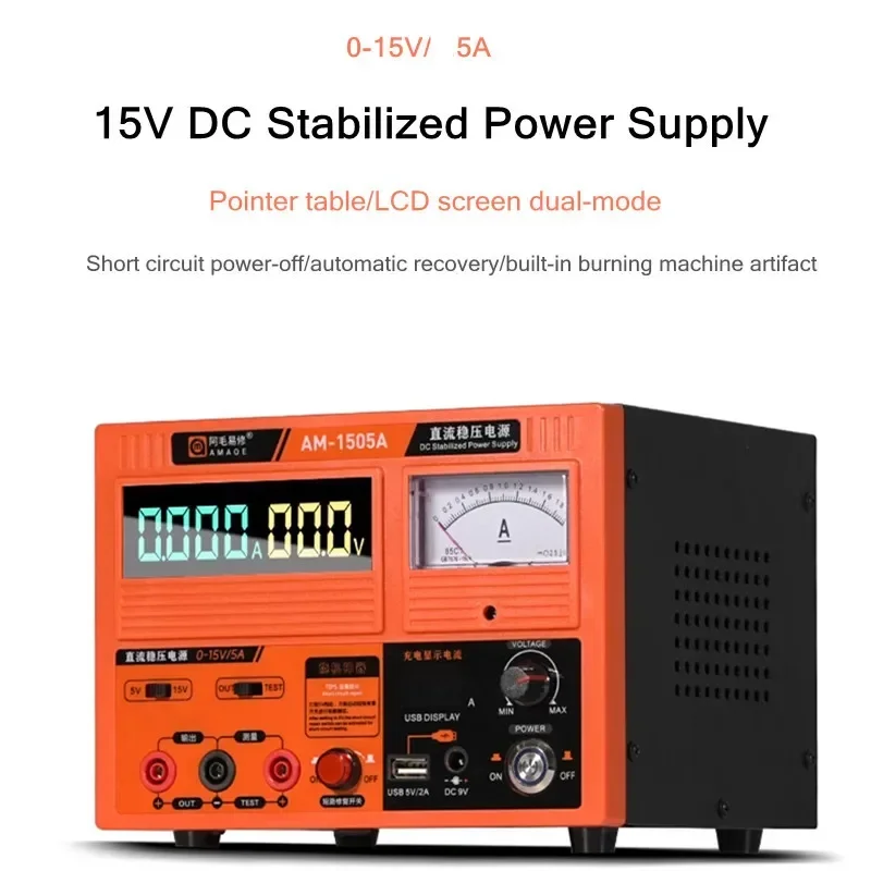 AMAOE AM-1505A 15V DC Stabilized Power Supply with Screen High Precision Pointer Short Circuit Repair Voltage Current Meter Tool
