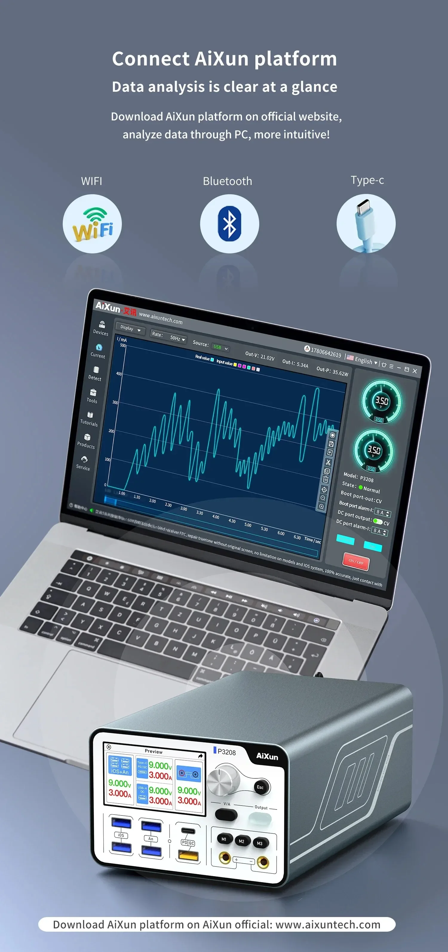 -Current collection is precise to 0.1mA,Connect AiXun platform,Data analysis is clear at a glance