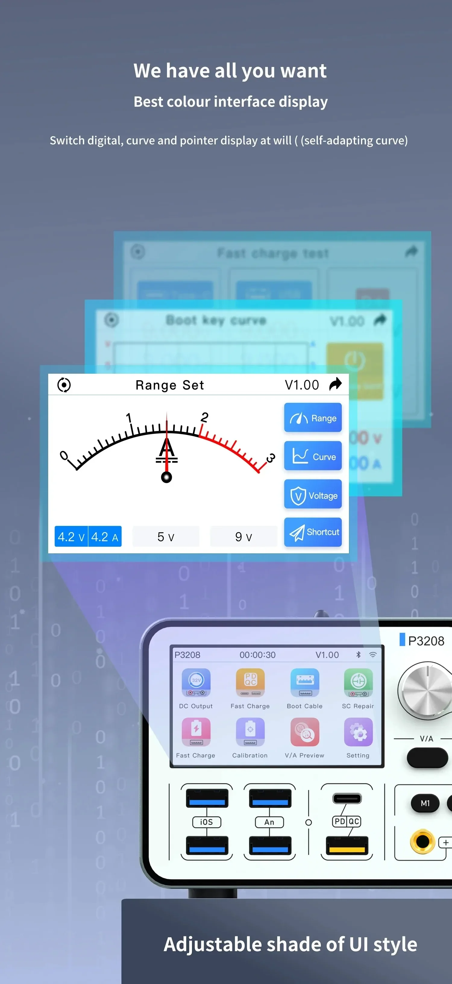 -Suitable for Battery calibration/Fast charge adaptor/One key boot up docking station/Pointer ammeter