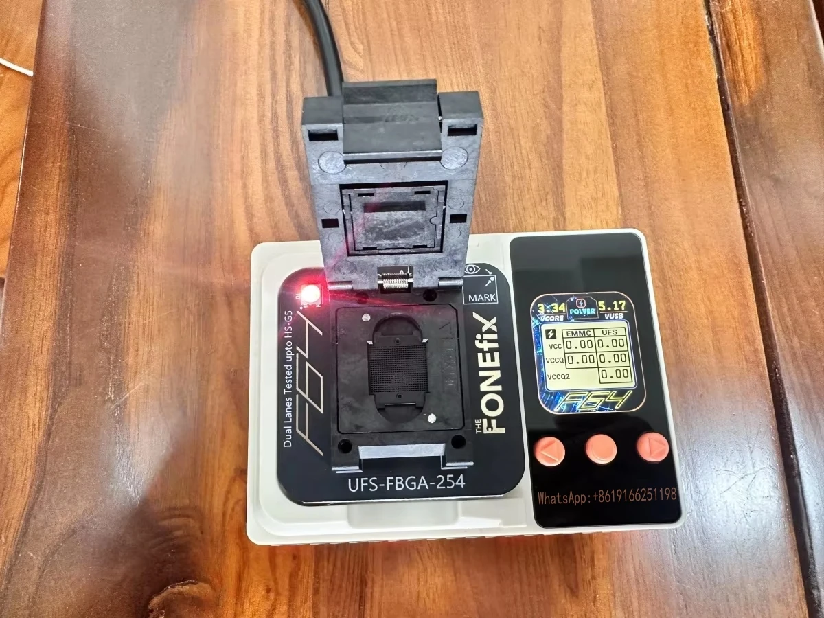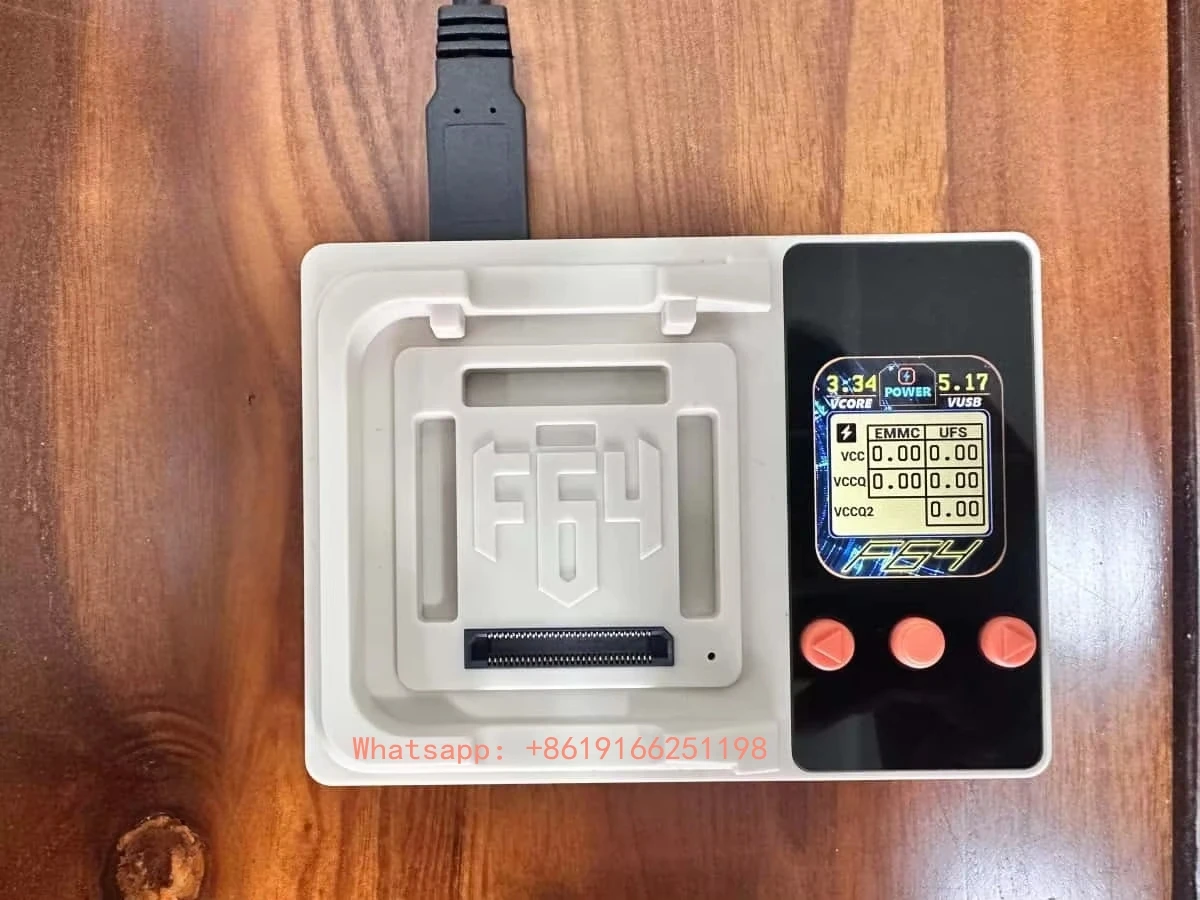 FeaturesUFSfull compatibility with versions 1.0 to 4.1, achieving HS-Gear speedsup to 420 MB/seMMCv. 4.1-5.1 – up to 8-bit HS200 speeds of200 MB/sNano Memory Card (NM)up to90 MB/sin a 4-bit modeMicroSD: SDSC, SDHC, SDXC, SDUCup to UHS-I speeds of104 MB/sRFFE, JTAG, SPI, I2C, and UART interfaces are supported as well.Technical SpecificationsCPUXtensa LX7 MCU @ 240 MHzExternal SRAM8 MBInternal SRAM512 KBFlash Memory16 MBWi-Fi Module2.4 GHz Wi-Fi (802.11 b/g/n)Powerful Data Access CapabilitiesThe software enables both high-level and low-level access to managed NAND storage:High-Level Access: Read / write Android OS partitions.Low-Level Access: works directly with RAW partitions, logical units, and RPMBs.Comprehensive UFS and eMMC ToolThe F64 Ultra Suite offers unparalleled control over UFS ICs and eMMC configurations:UFS: access and configure descriptors, attributes, and flags to ensure proper IC setup.eMMC: full access to the Extended CSD for deep-level customization and low-level repartitioning.Supported OSWindows 8, 10, 11Flash64 Ultra – Package ContentWear adapter UFS kit:Flash64 Lite seteMMC 4 in 1 Adapter – 1 pc.UFS-FBGA-153 Adapter – 1 pc.UFS-FBGA-254 Adapter – 1 pc.UFS-FBGA-297 Adapter – 1 pc.