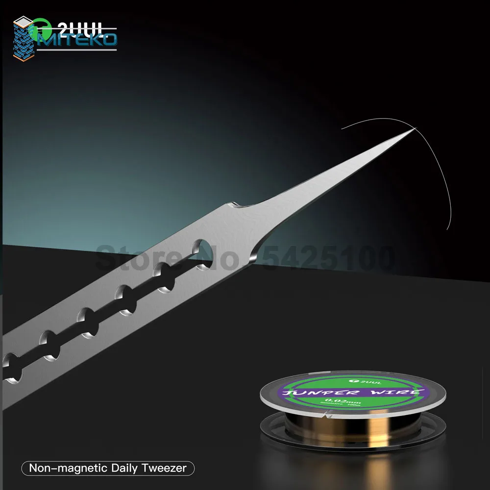 2UUL TW21 Non-Magnetic Daily TweezerThe Essential Precision Tool for Everyday Phone RepairsProfessional-Grade Handling for Delicate ComponentsEngineered for repair technicians and micro-soldering specialists, the 2UUL TW21 non-magnetic tweezers deliver exceptional control for daily PCB work. The ultra-fine tips and ergonomic design make these your go-to tool for handling the smallest smartphone components with confidence.Key Features:✔ Anti-Magnetic Stainless Steel – Safe for use near sensitive components✔ Precision-Machined 0.5mm Tips – Perfect for 01005 components and micro-soldering✔ ESD-Safe Construction – Protects delicate electronics from static discharge✔ Optimized 45° Angled Tips – Enhanced visibility for board-level repairs✔ Textured Grip Surface – Superior control during prolonged useIdeal For:• Daily smartphone logic board repairs• Micro-SMD component placement• Flex cable and connector adjustments• Capacitor and resistor replacement• Battery connector repairs