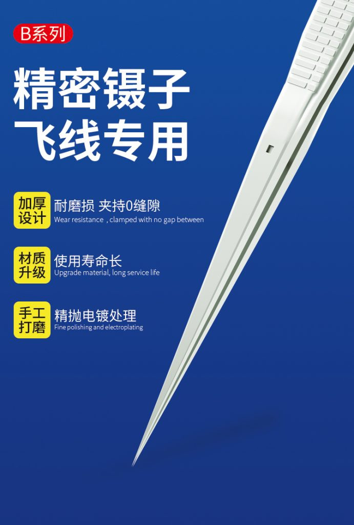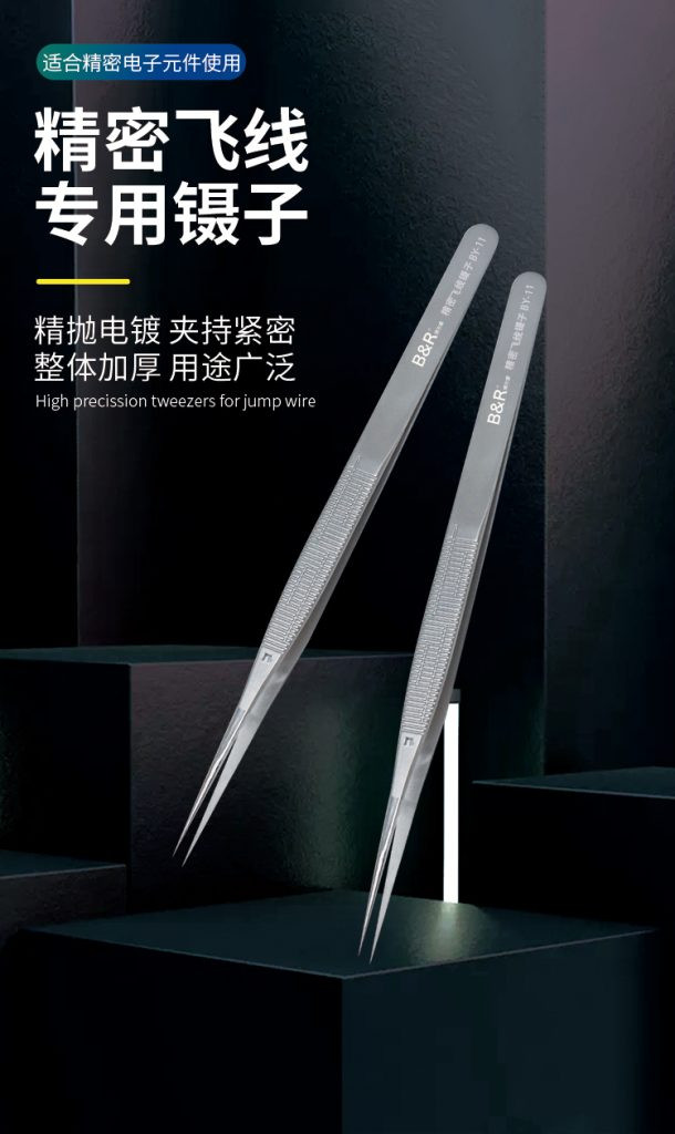 جفت B&R Bo-11 المصمم لأعمال الـ SMD يوفر دقة عالية وتحكم ممتاز في المكونات الصغيرة. مصنوع بجودة احترافية ليتحمل الاستخدام اليومي في صيانة الموبايل والـ PCB.