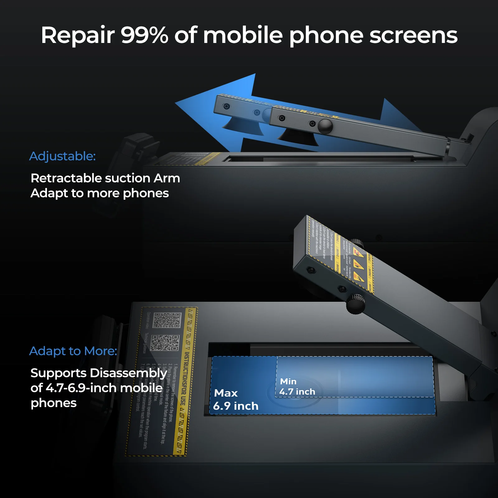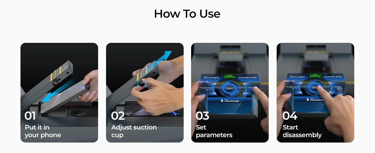 CP1 Automatic Screen Separator MachineDisassembly Non-destructive Separator For removing all mobile phone screens and back coversHow to Removal the Broken Screen 🔧. Product Introduction:* Upgraded dual-zone temperature control, such as being able to control the temperature of the bottom and side separately, to adapt to the screen removal requirements of different screens* Built-in powerful motor and vacuum pump provides a powerful suction cup that can easily absorb the broken screen.* 2-IN-1 mobile phone screen separator with manual and automatic modes, the personalized design can meet the screen removal needs of all types of mobile phones. 🔧2. Product Specifications:Brand: XwitzealModel Number: CP1Input voltage: 110V~240VItem Dimension:43*22*19.5(cm)Item Weight: 8kgWarranty: 360 days warrantySupport: Lifetime technical support⚠️ If any machine parts are damaged or update, please contact us for update or purchase. 🔧3. Product Included:1) CP1 Screen Separator Machine2) Offline Screen3) Adapter4) Power Supply5) User Manual 🔧4. Shipping Instructions:* Free delivery via DHL/UPS/FedEx Express, Not including #Tax fee* We do not accept shipments from designated logistics providers 🔧5. After-Service:*Lifetime Technical Online Support* Real-time Updates* 360 Days Warranty 🔧6.【Official Notice】All orders are strictly protected by AliExpress. If you encounter "payment without order",please: ① Check your account's "My Orders" → ② Contact AliExpress 24/7 Customer Support → ③ Forward case ID to us. We guarantee 12-hour response!📌After payment, wait 5 minutes and refresh "My Orders".📌 If the order is missing, DO NOT pay again – contact us with payment proof.