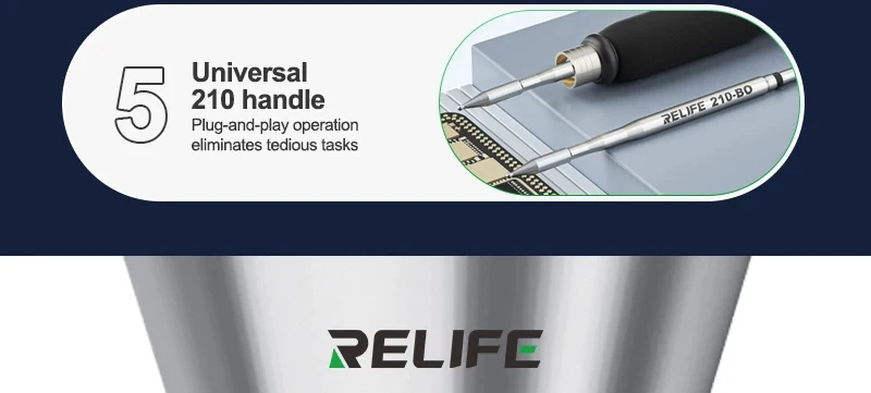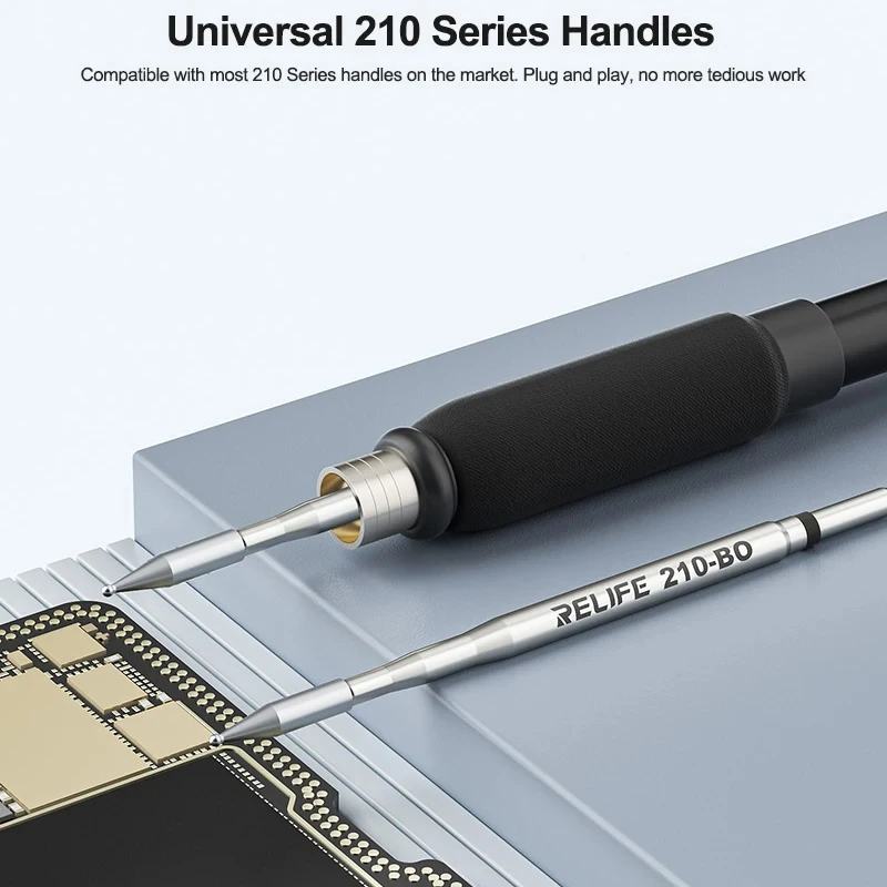 RELIFE 210-BO Integrated Ball Tip Soldering Iron – 1-Second Heat-Up for Precision WorkExperience the future of soldering with the RELIFE 210-BO! This innovative integrated soldering tip combines the heater and tip into one unit, delivering instant heat-up in just 1 second. Designed with a precision ball tip and multi-layer nano-plating, it ensures fast, even soldering and is perfect for delicate electronics repair and SMD work.Key Features:⚡ 1-Second Instant Heat-UpBuilt-in heater and tip design allows for rapid heating, saving you time and improving workflow efficiency.🔧 Innovative Ball Tip DesignIdeal for precision soldering in tight spaces and correcting solder bridges on IC chips.Enables smooth, even, and full soldering for professional results.🛡️ Multi-Layer Nano-Plating for DurabilityOxygen-Free Copper Core: Ensures excellent thermal conductivity.Iron Plating Layer: Improves overall quality and durability.Chrome Plating: Prevents solder creep and sticking.Stainless Steel Shell: Reduces heat loss for consistent performance.Nano-Plating: Offers oxidation and corrosion resistance for a long service life.🔌 Plug & Play CompatibilityDesigned for use with RELIFE 210-series soldering handles for easy setup and replacement.What’s in the Box?1x RELIFE 210-BO Integrated Soldering TipIdeal For:Precision Electronics SolderingMobile Phone and PCB RepairSMD Component Work and Chip Re-ballingDIY Electronics and Hobby Projects