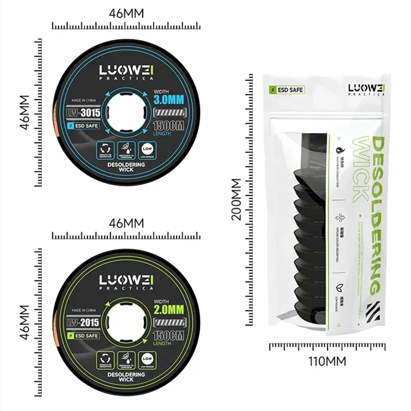LUOWEI LW-2015/3015 2/3mm Desoldering Mesh Braid Tape Copper Welding Point Solder Remover Wire Soldering Wick for Soldering