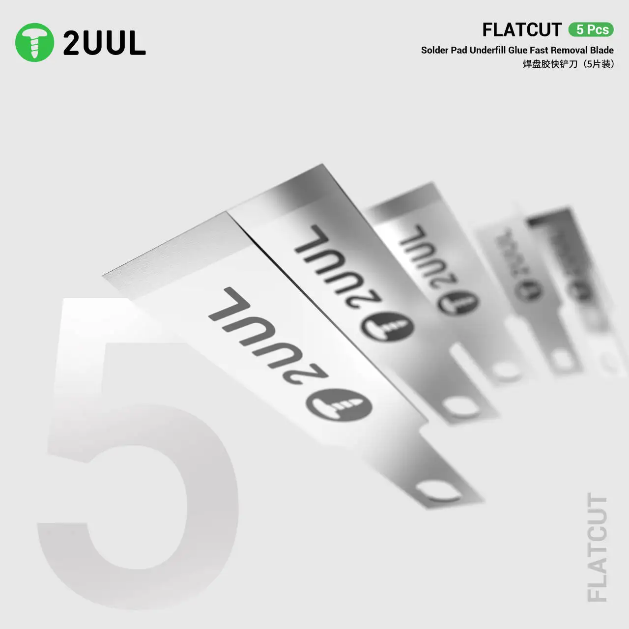نظرة عامة: طقم شفرات 2UUL DA28 هو الخيار المفضل للمحترفين لتنظيف اللوحة الأم (PCB) بعد رفع الآيسيات. تتميز هذه الشفرات بتصميم “القطع المسطح” (Flatcut)، حيث تكون حافة الشفرة مستقيمة وعريضة قليلاً وليست مدببة، مما يجعلها تعمل كـ “مكشطة” دقيقة وآمنة جداً.