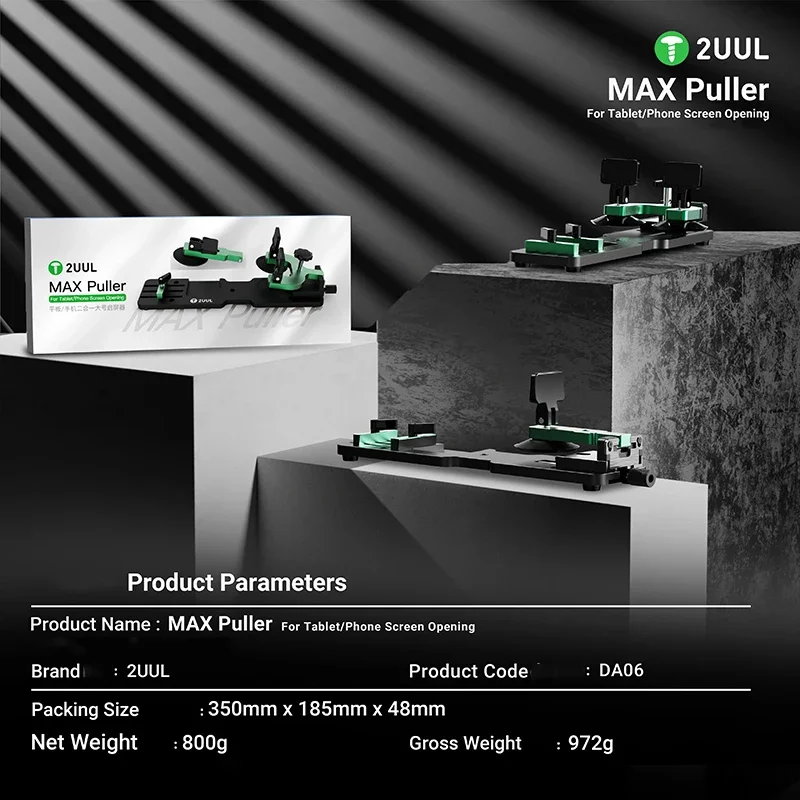 2UUL DA06 MAX Puller for Tablet Phone Screen Opening Fixture Double Suction Cup LCD Screen Disassemblely Clamp Repair ToolParameters:Product Name : MAX Puller For Tablet / Phone Screen Opening.Brand: 2UUL.Product Code: DA06.Packing Size: 350mmx185mmx48mm.Net Weight: 800g.Gross Weight: 972g.