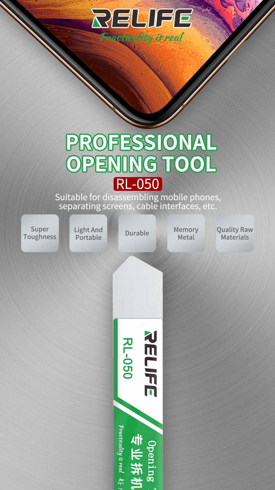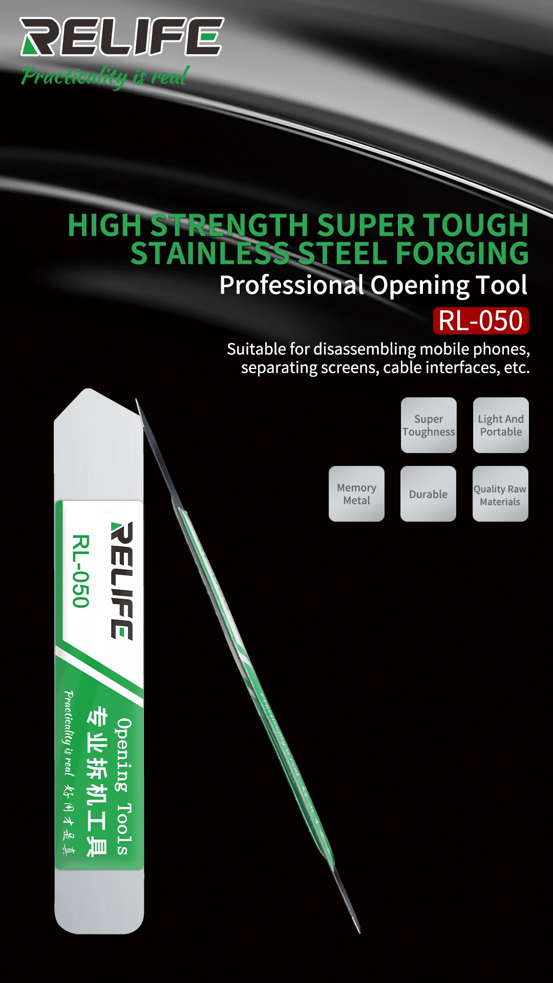 RELIFE RL-050 Professional Opening Tools High Strength Stainless Steel Mobile Phone Tablet LCD Screen Disassembling Pry Spudger