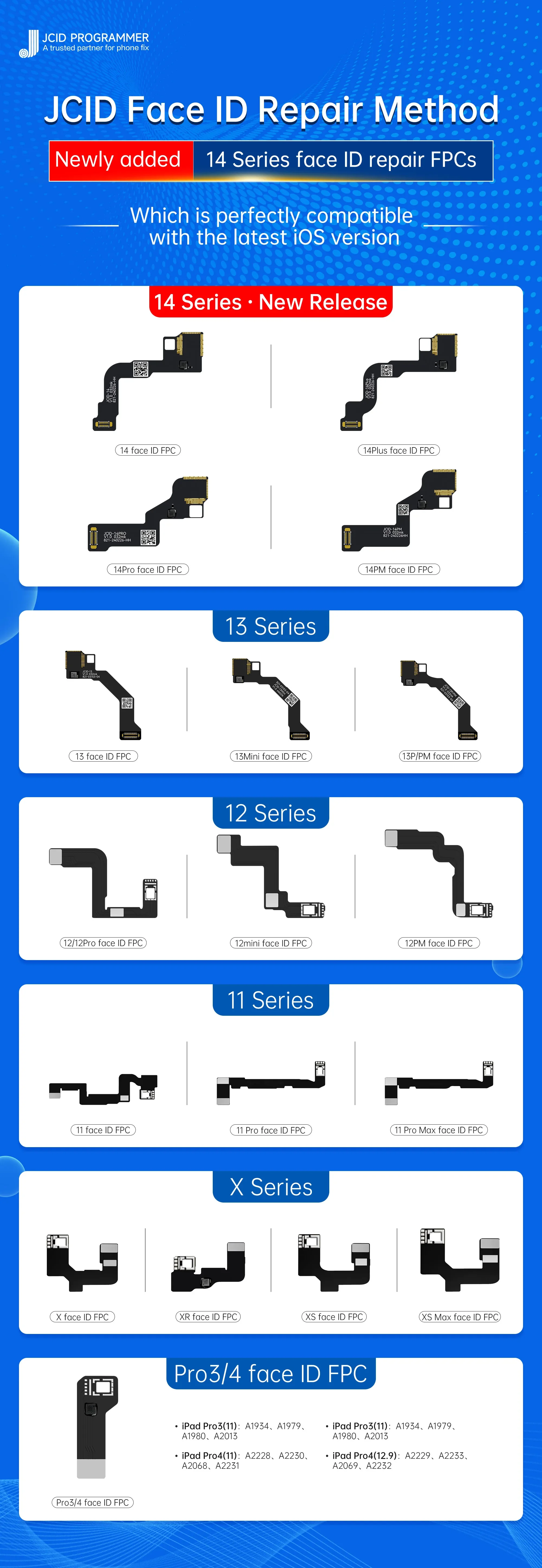 Vervangende flexkabel voor iPhone X-12 pro max Dot Matrix Face ID-reparatie, JC Dot Matrix Flex-kabel voor iPhone X -11 pro max Face ID-reparatie