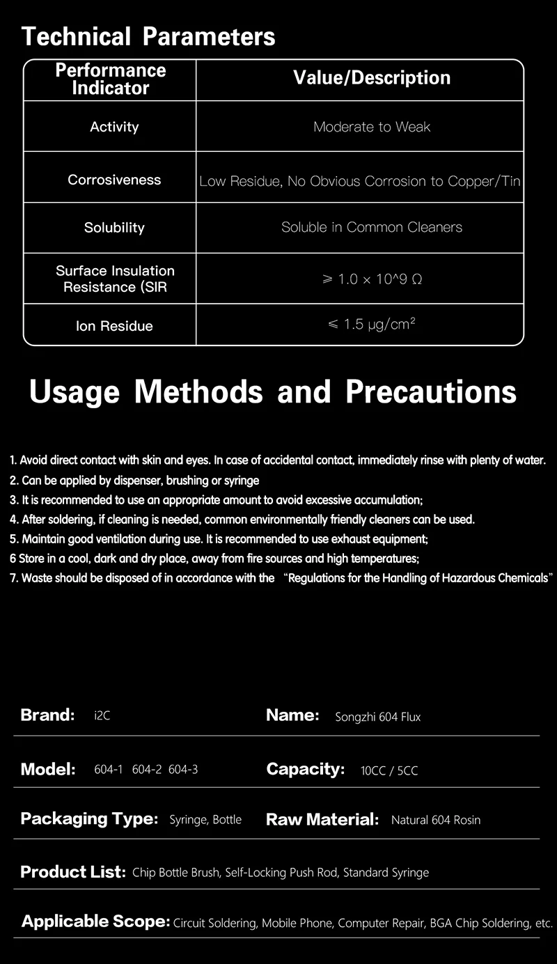 i2C 604-1 Standard Syringe Type Songzhi 604 Soldering Flux Non-conductive High-performance No-cleaning Solder Paste