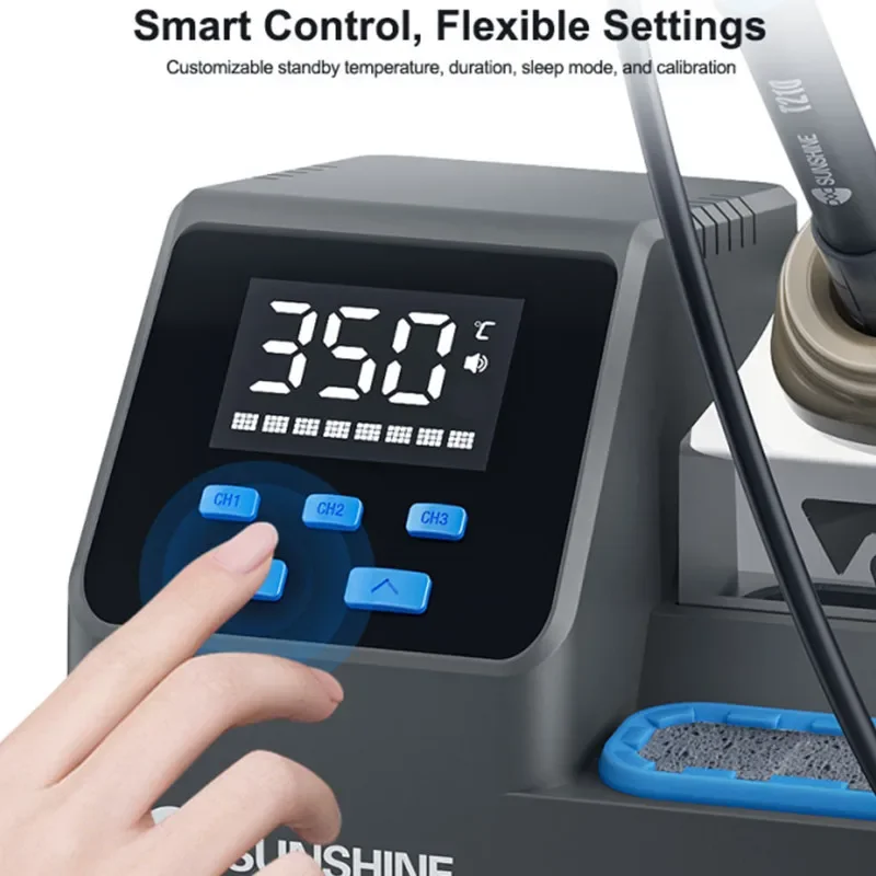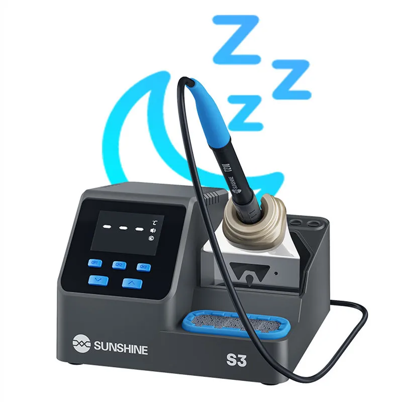SUNSHINE S3 210 Intelligent Soldering Station Universal C210 Handle Quick Heating Soldering Iron Smart Sleep Welding PlatformSUNSHINE S3 210 intelligent soldering station:.Heats up in 2 seconds, melts solder quickly, easy for large and small joints .Customizable standby temperature, duration, sleep mode, and calibration .LED display for real-time monitoring, 100–480°C precise control, 3 quick-access modes .Smart auto sleep,Low-power sleep mode for energy saving and durability .Tip holder design allows multiple solder tips, neat and organized .Easy to remove, made of heat-resistant silicone, large capacity for solder waste .Universal 210 series handle,Plug and play, 2-second replacement, fast heat transfer, anti-oxidation, easy tinning