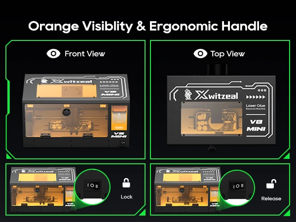 ماكينة ليزر Xwitzeal V8MINI – إزالة الظهر الخلفي (iPhone X-17) مع قوالب حديد