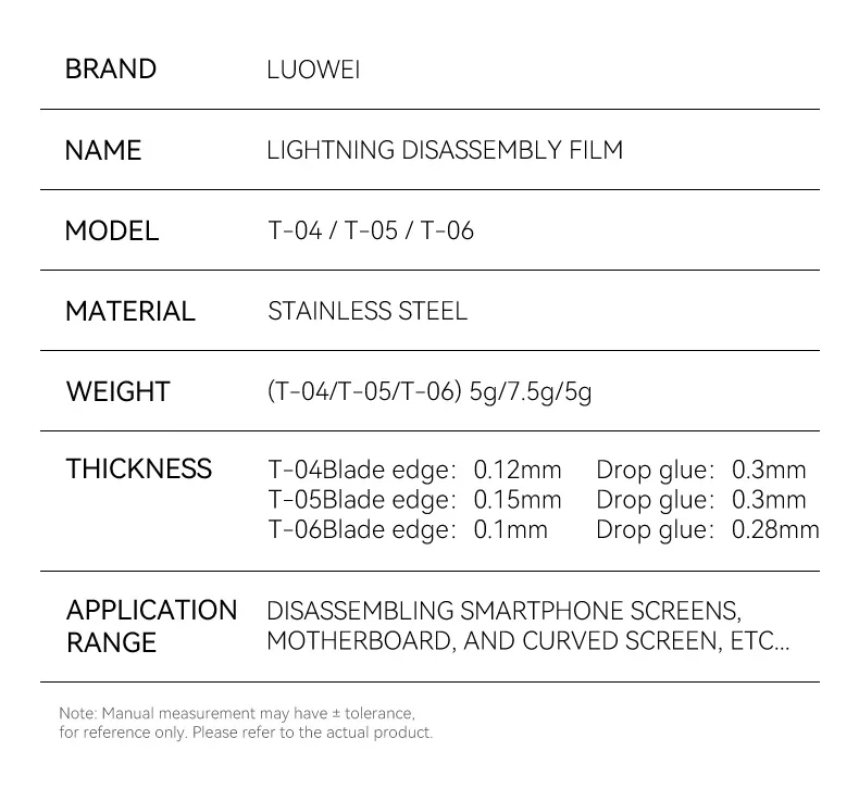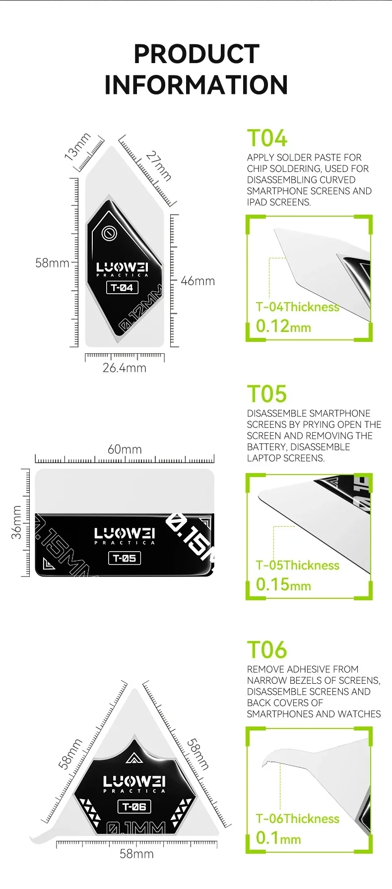 LUOWEI LW-T04 T05 T06 Lightning Disassebly Film Multi-function Disassembly Piece Set Curved Screen Adhesive Removal