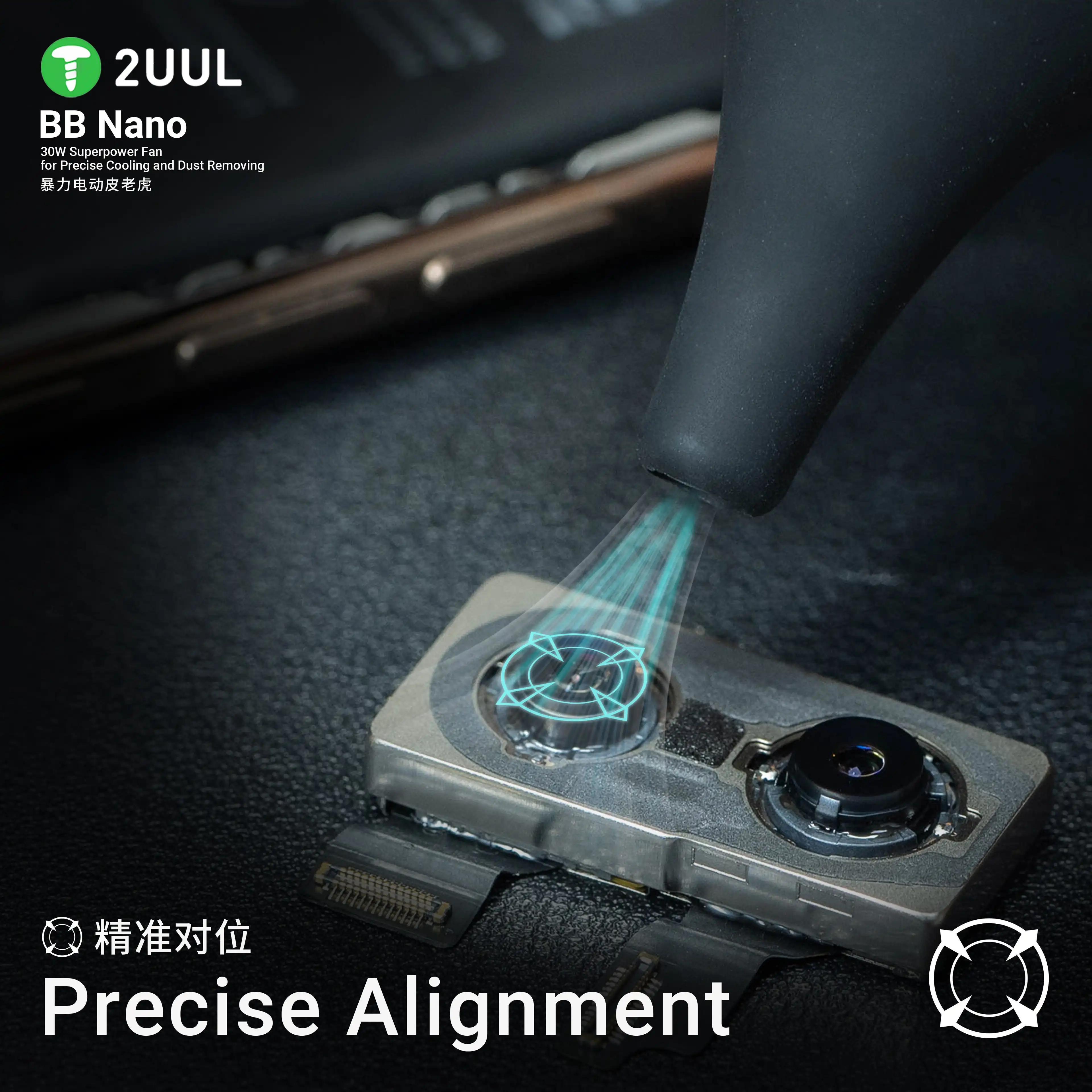 2UUL Nano 30W Superpower Fan Portable Vacuum Precise Cooling Dust Remove for Phone Board Soldering Dissipate Heat Dust Keyboards Clean Repair DescriptionThe BB Nano 30W Superpower Fan by 2UUL is a compact, high-performance cooling and dust removal device. With its 30W power, it delivers precise cooling and efficient cleaning. Ideal for component temperature reduction and precise alignment tasks.FeatureFeatures a 30W integrated turbine motor for powerful air flow.Designed for precise cooling and efficient dust removal.Offers a long battery life with a 1300mAh capacity.Compact and portable for on-the-go convenience.Equipped with a button for easy operation, including start, shift, and continuous cleaning functions.Provides visual cues for remaining power levels.