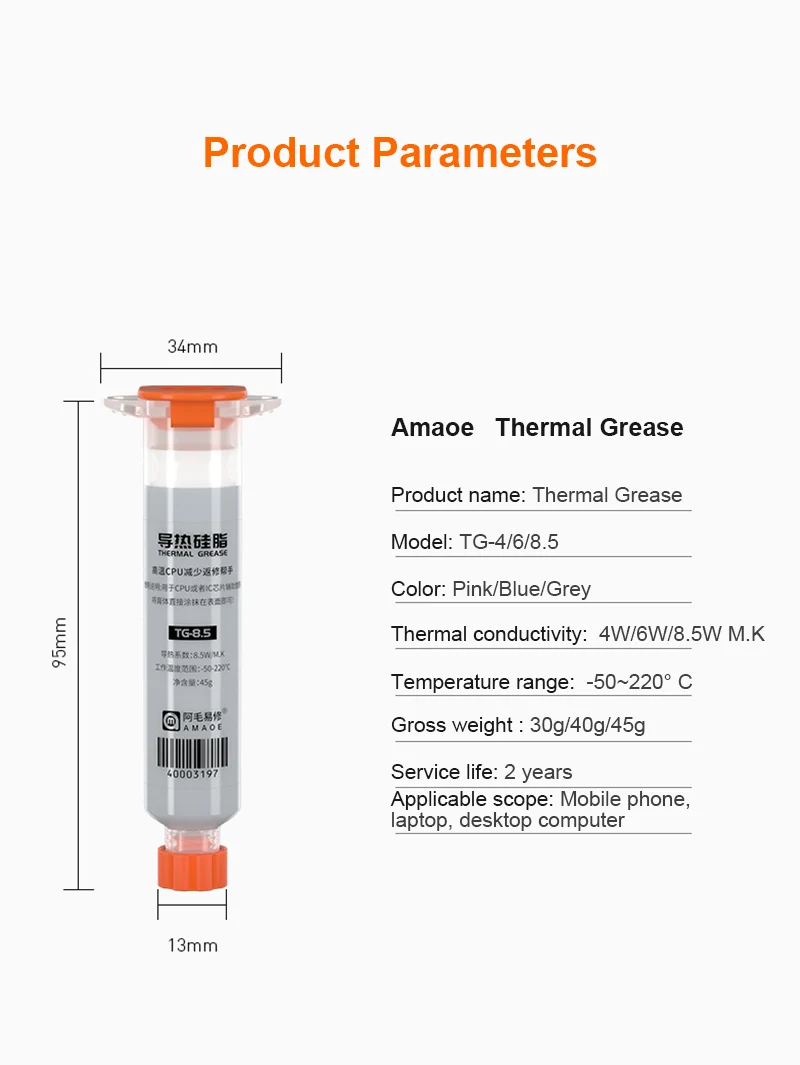 AMAOE 1PCS Thermal Grease 10Ccc Pink/Blue/Grey Thermal Paste Thermal Conductivity 4W/6W/8.5W for Phone Laptop Computer CPU