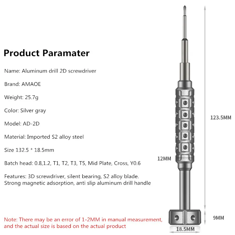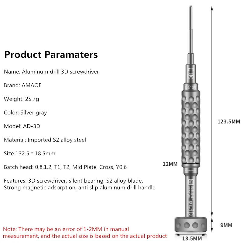 AMAOE AD-2D AD-3D Aluminum Drill Screwdriver for Mobile Phone Repair with S2 Alloy Head High Precision Maintenance Bolt Driver