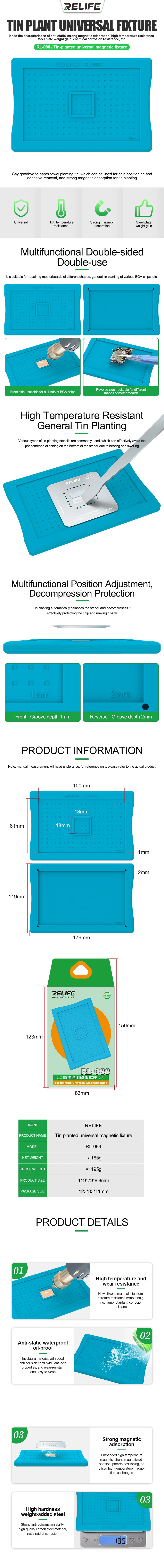 RELIFE RL-088 Universal Tin-planted Magnetic Fixture for Mobile Phone BGA Chips High Temperature Resistance Adsorption Repair Mat