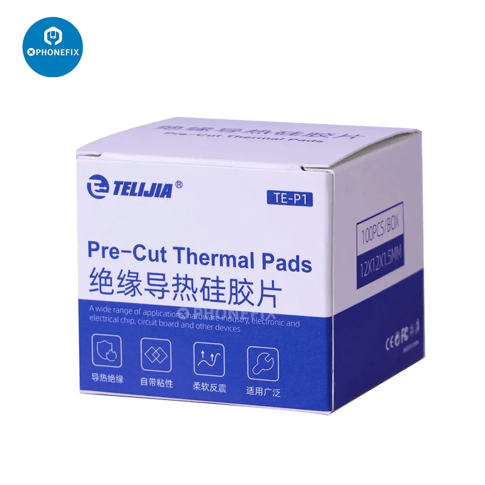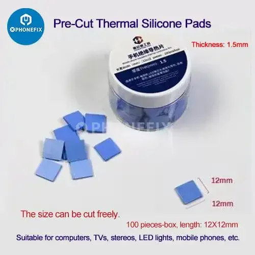 100 Uds 2UUL almohadillas térmicas de silicona precortadas 12X12X1, 5mm para almohadilla de teléfono Macbook placa base GPU CPU reparación rápida disipación de calor