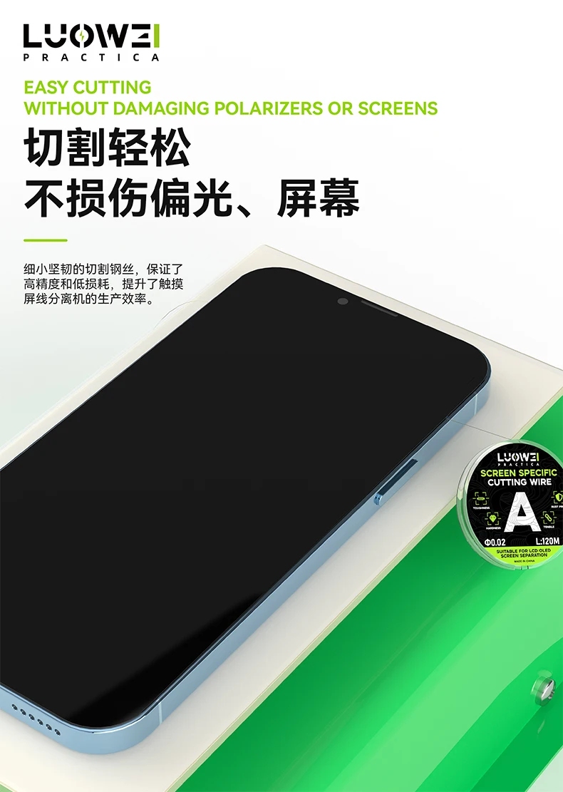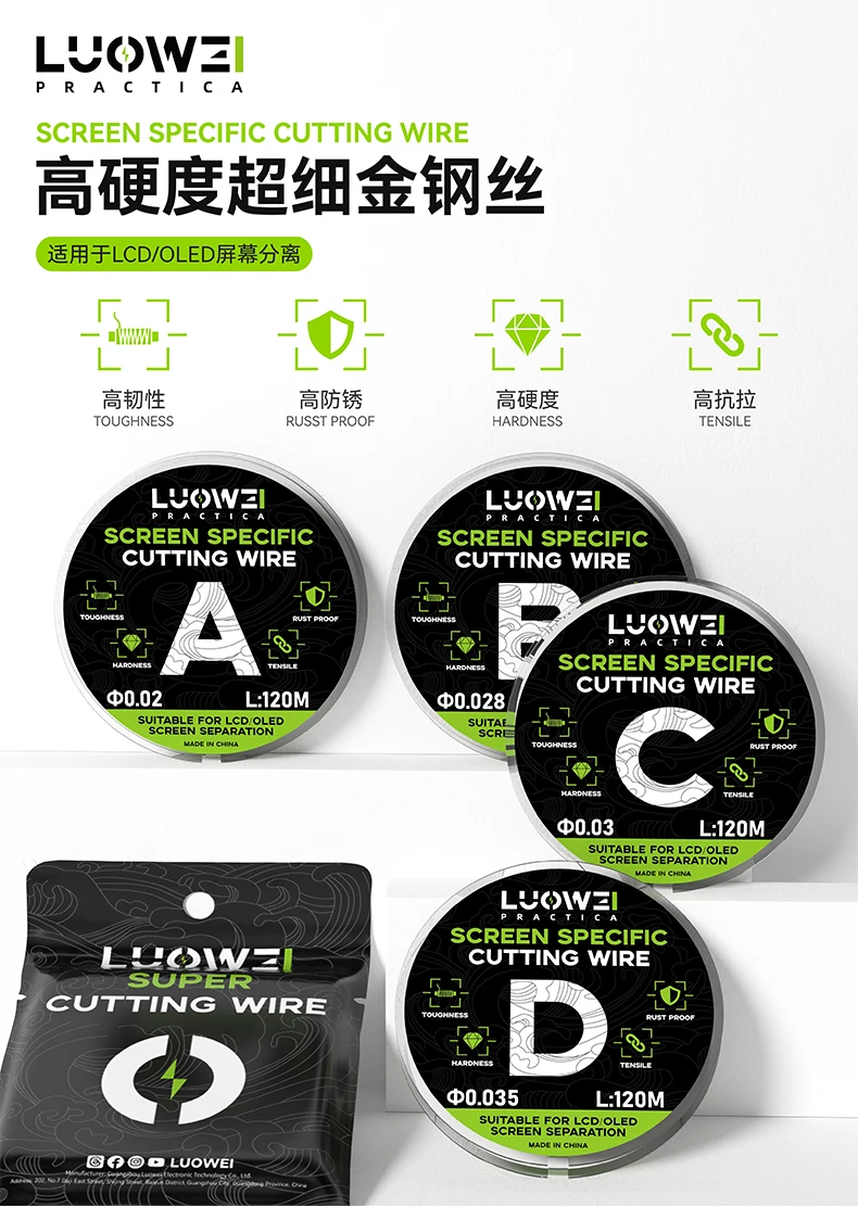 LUOWEI Screen Specific Cutting Wire 0.02mm 0.028mm 0.03mm 0.035mm 120M/500M for Mobile Phone Screen Glass OCA Removal Tool