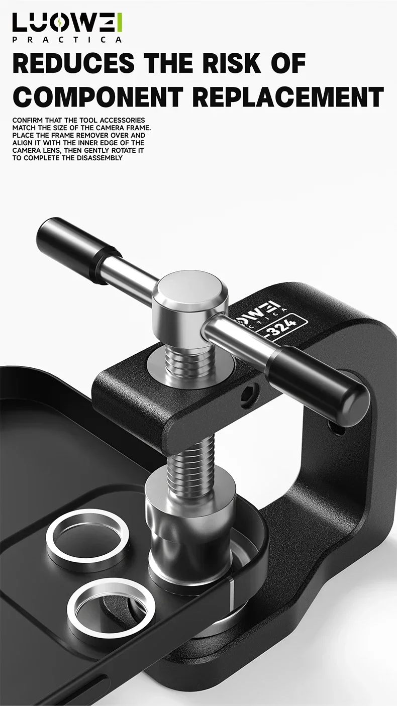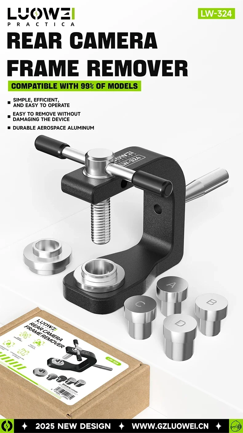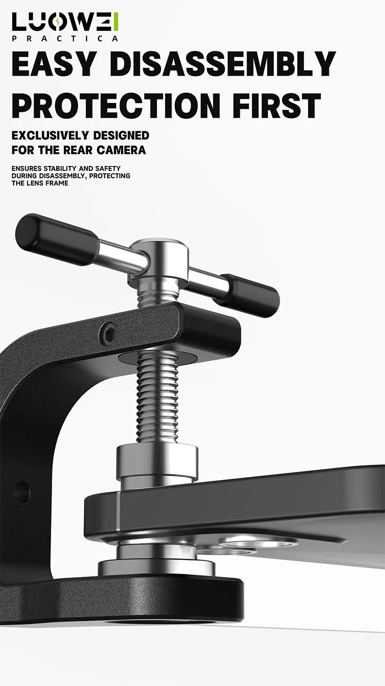 أداة احترافية من LUOWEI مصممة خصيصًا لتسهيل عملية فك إطارات كاميرات الهواتف الخلفية دون انزلاق أو تلف. توفر ثباتًا عاليًا وتقلل الجهد أثناء العمل، مع تصميم مريح ومتين يدعم عدة مقاسات وإطارات مختلفة.