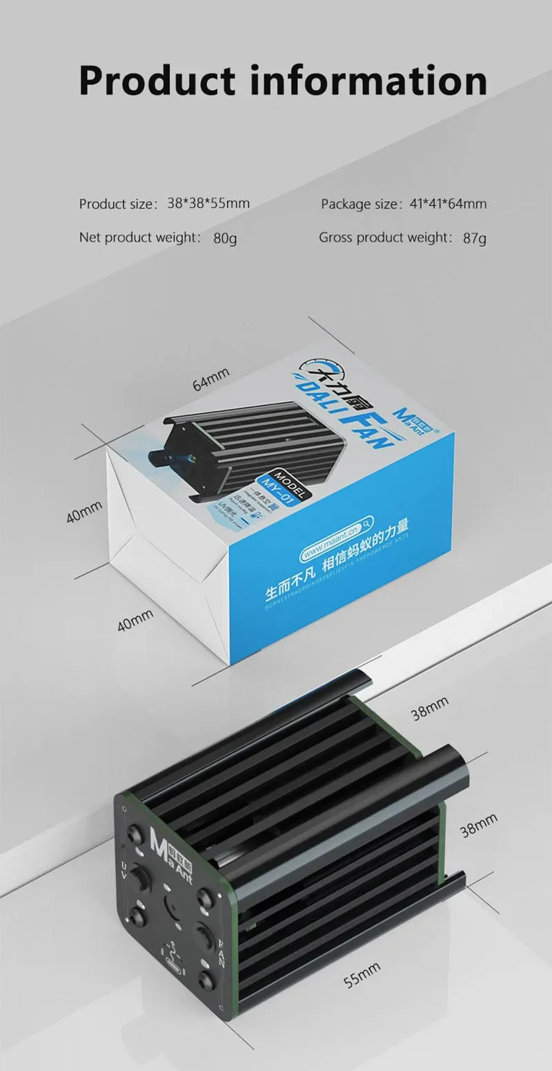 MaAnt MY-01 – مروحة تبريد للطاقة مع لمبة UV وشفط دخان للحام