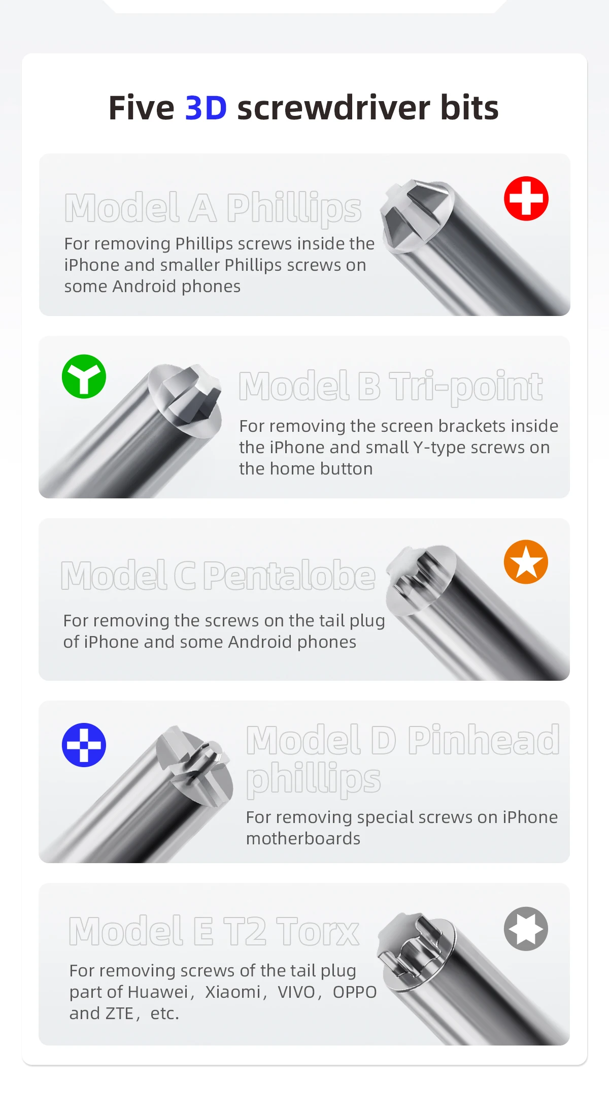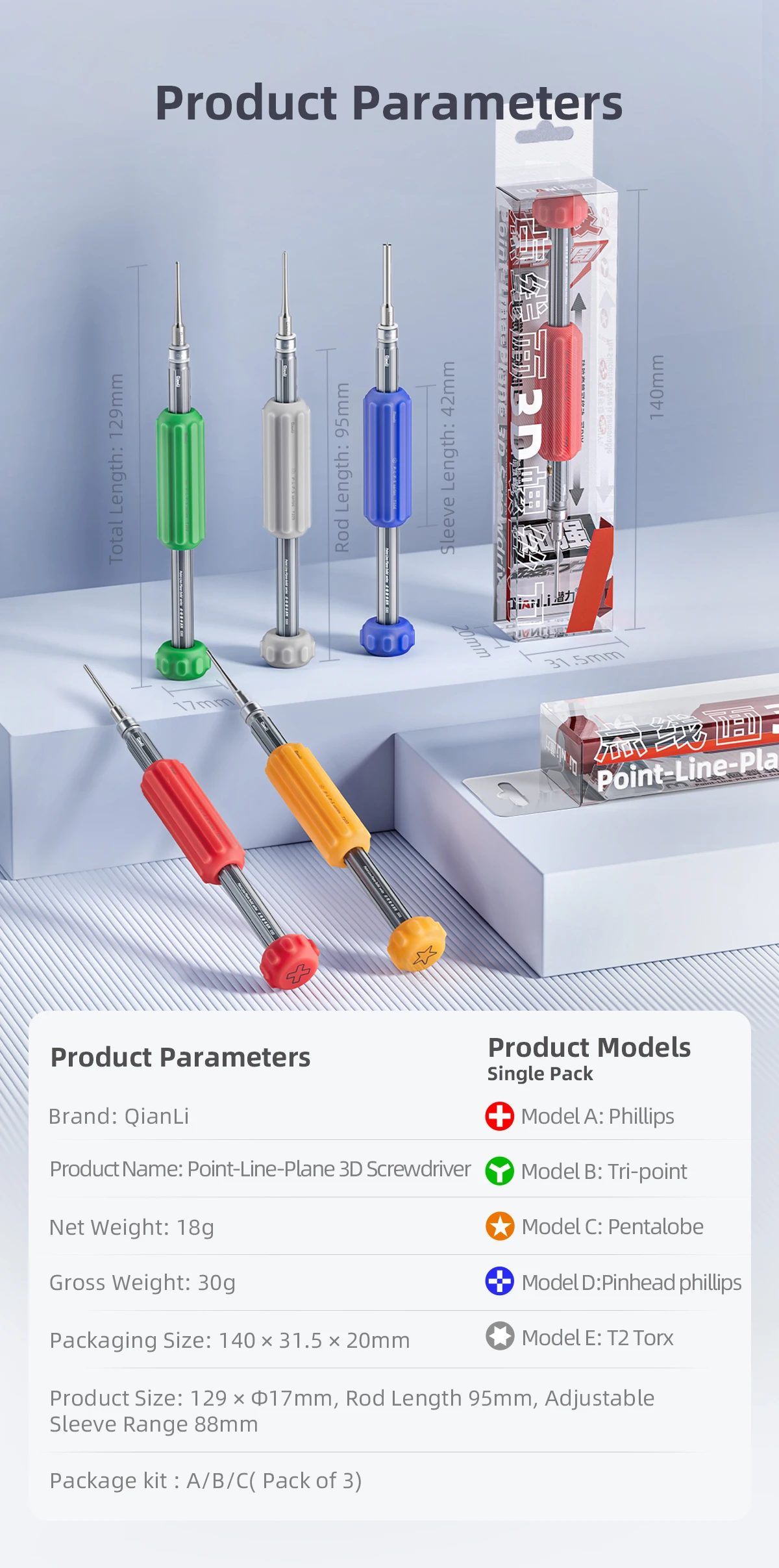 QIANLI Innovation Point Line Surface 3D Screwdriver Set High Precision Screwdriver Head Five-point Cross Strong Magnetic Tools