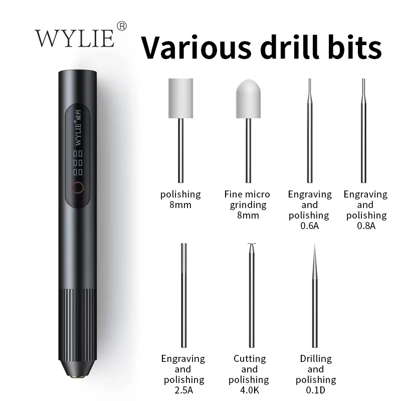 WYLIE Smart Electric Sanding Grinding pen for Mobile Chips Polishing/ 9 pieces Polish tips/USB/Type-C Charger/Polishing/Cutting