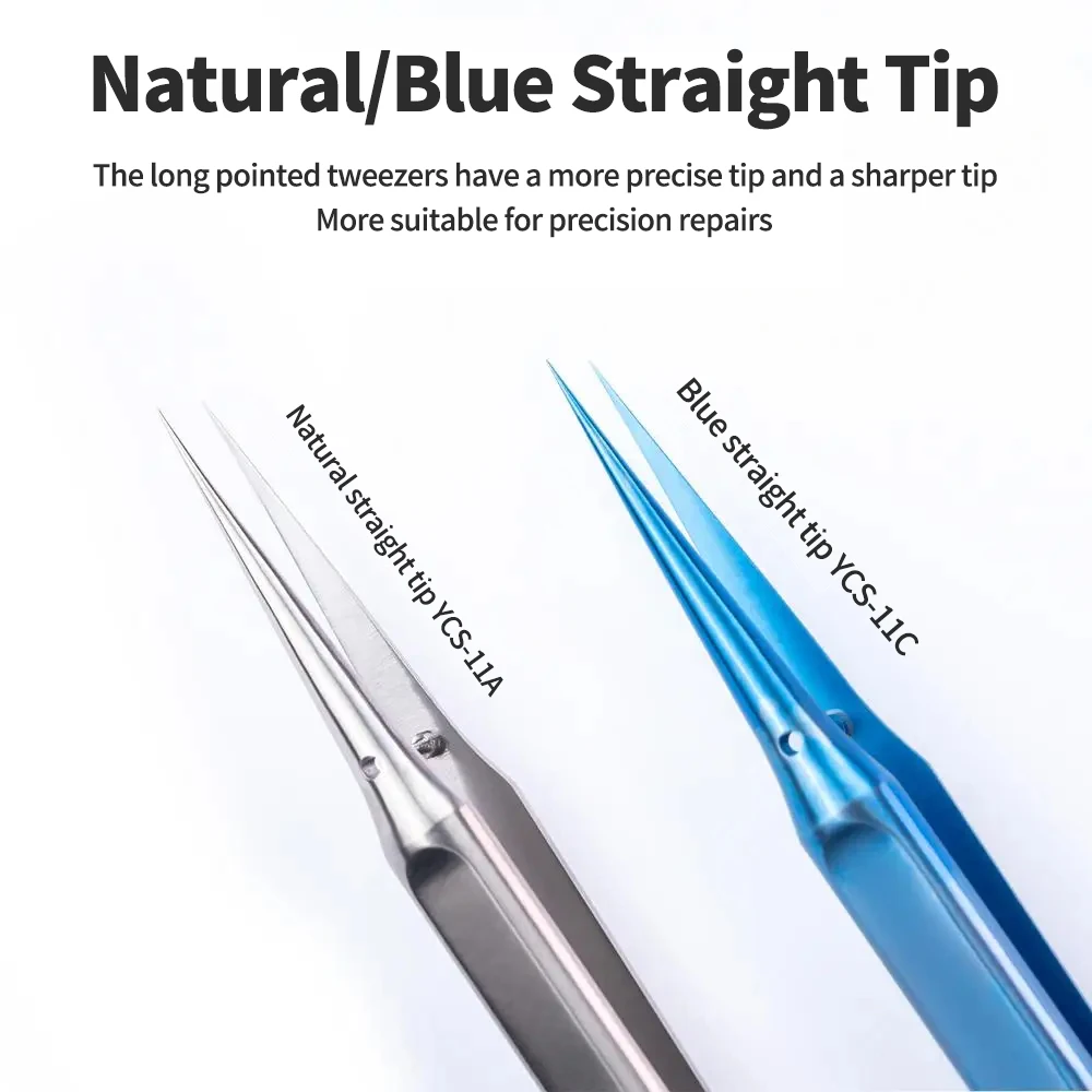 -The long pointed tweezers have a more precise tip and a sharper tip,More suitable for precision repairs