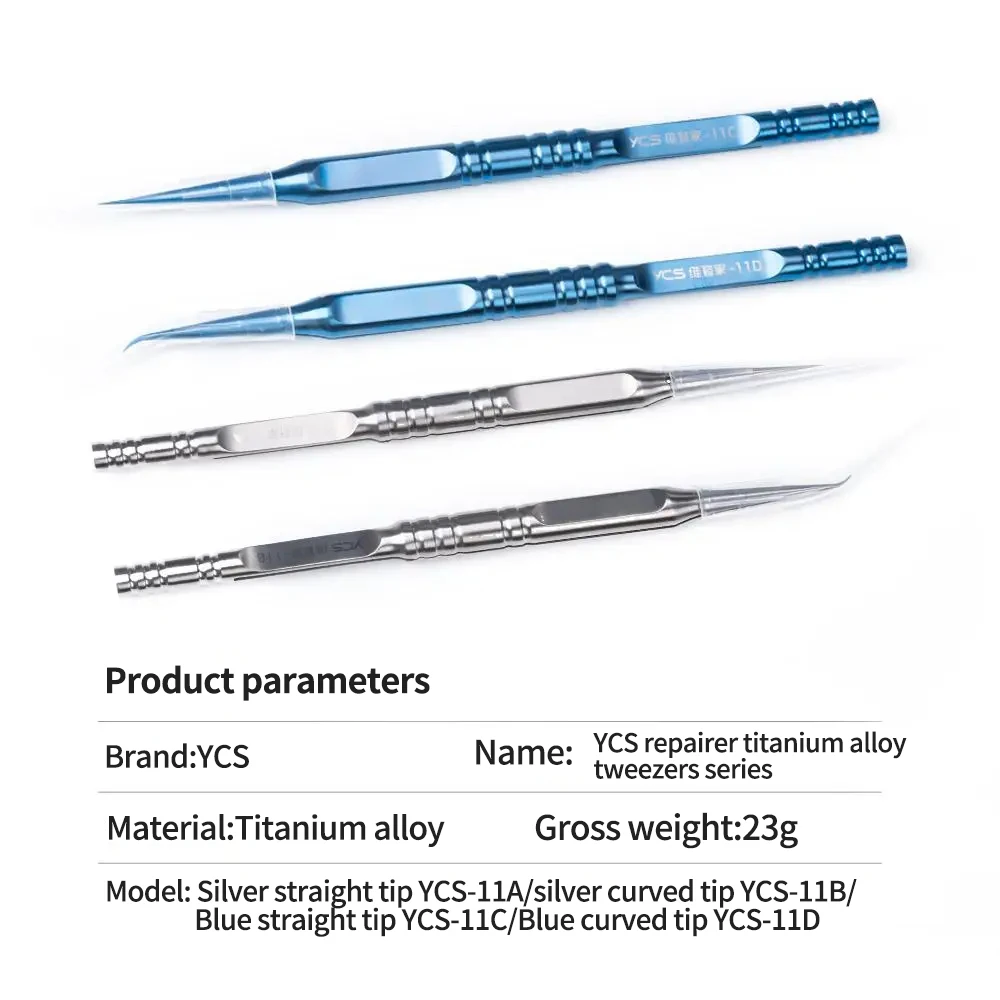 YCS Repair Titanium Alloy Curved Pointed Tweezers for Mobile Phone Computer Motherboard Chip Flying Wire Clamping Tweezers Tool