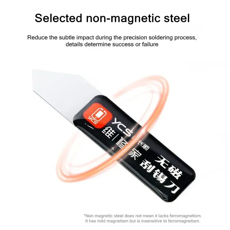 YCS غير المغناطيسي الفولاذ المقاوم للصدأ القصدير كشط سكين ل IP أدوات إصلاح الهاتف المحمول لحام لصق خلط حدق افتتاح Spudger